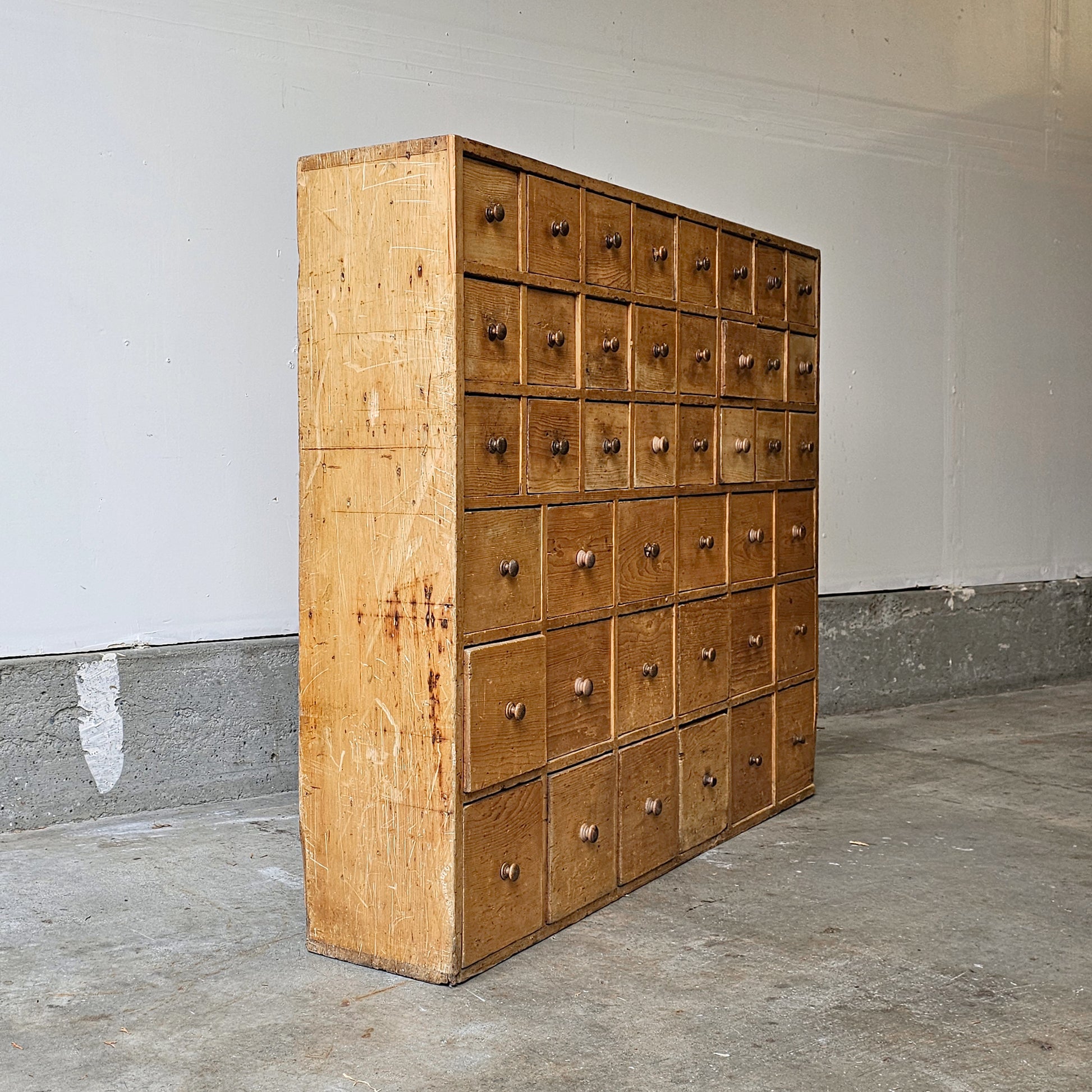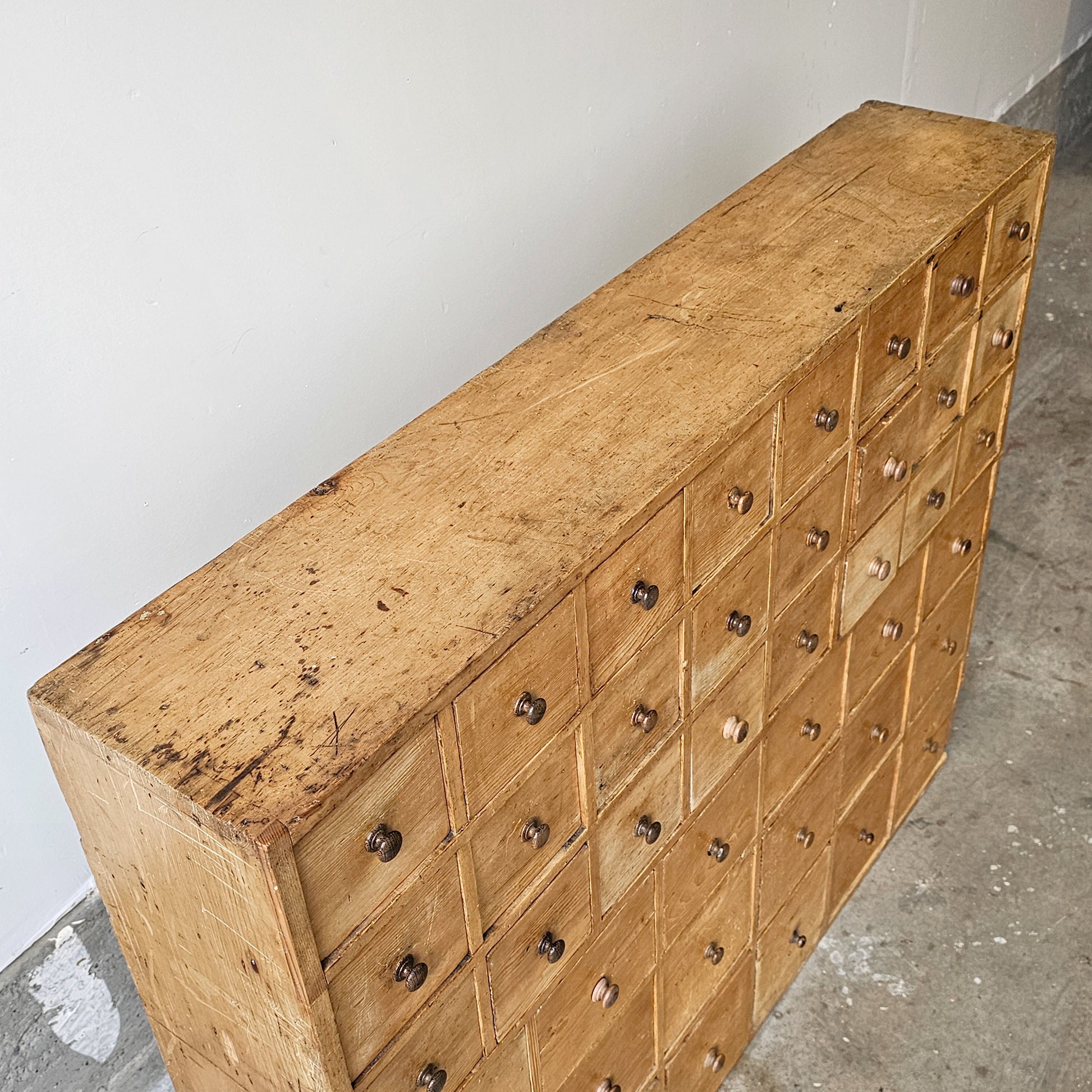 An incredible antique pine apothecary cabinet with 42 drawers—a true statement piece for collectors, designers, and anyone who loves character-rich storage. These multi-drawer units are highly sought after, and this one offers beautiful proportions, warm pine tones, and the unmistakable charm of well-used, working furniture.