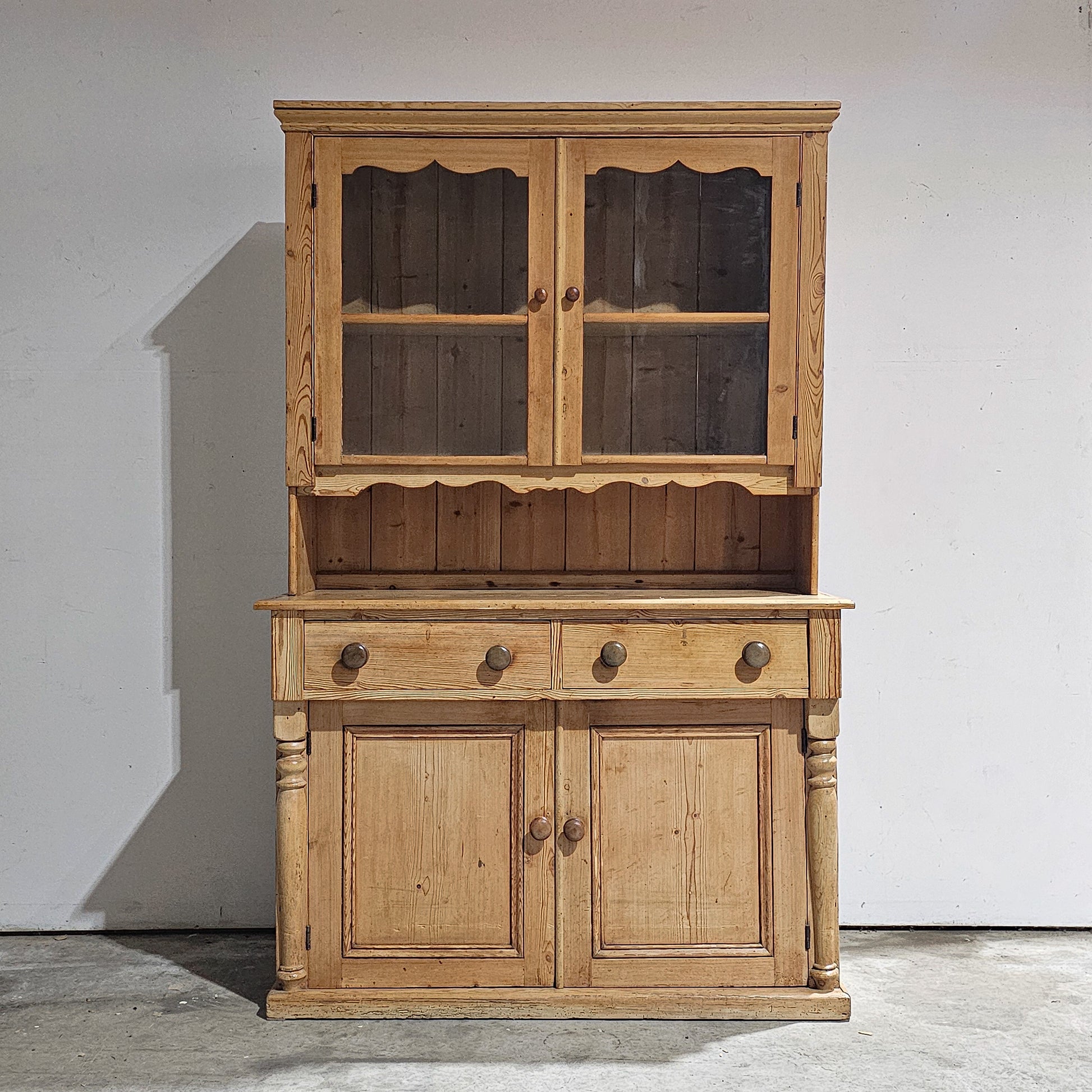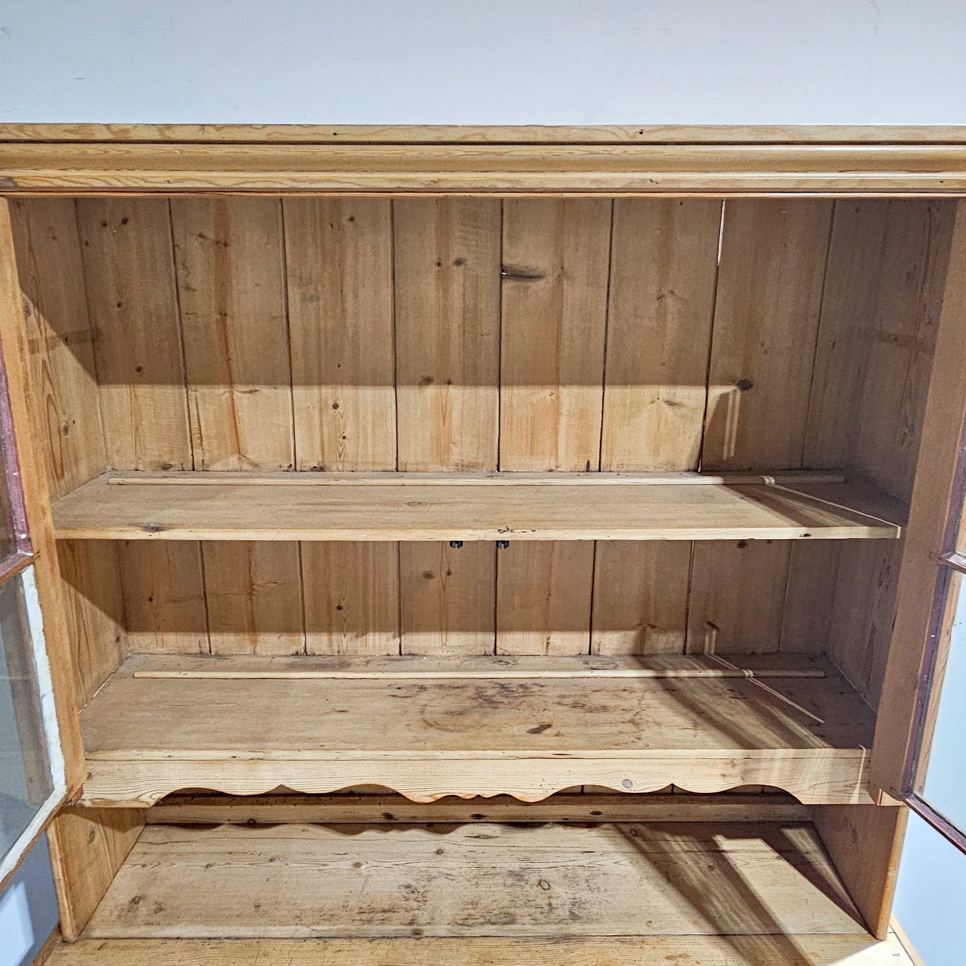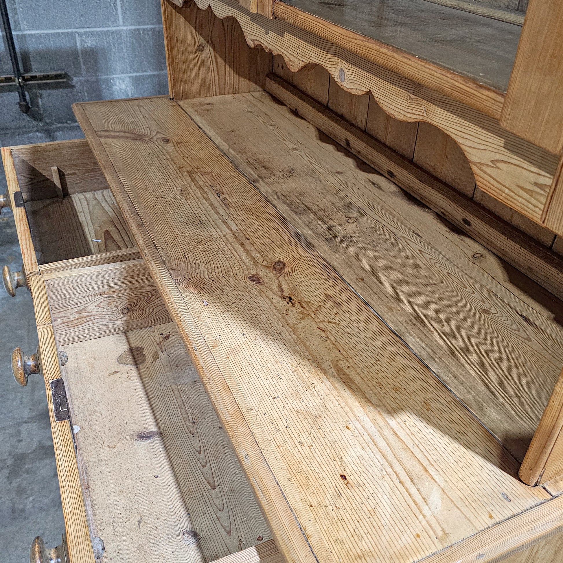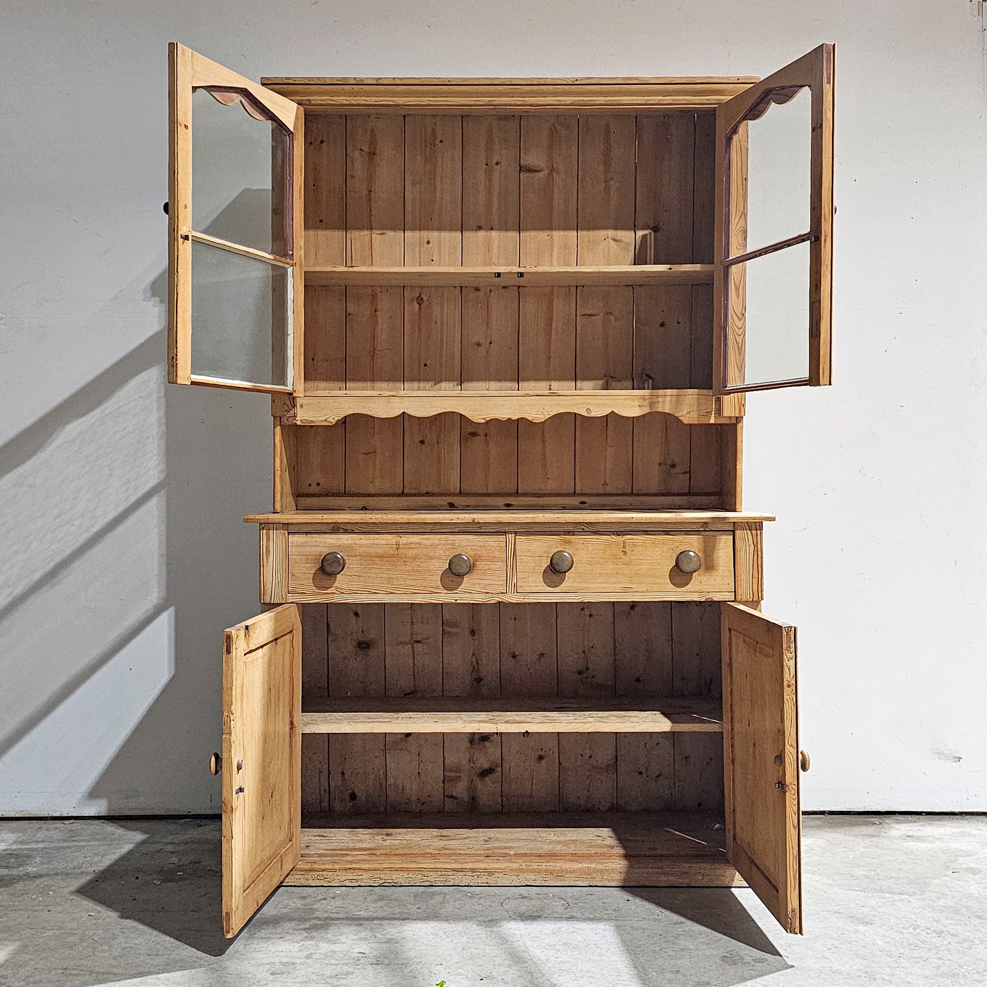 Antique English Pine Hutch with Glass Doors - Circa 1880