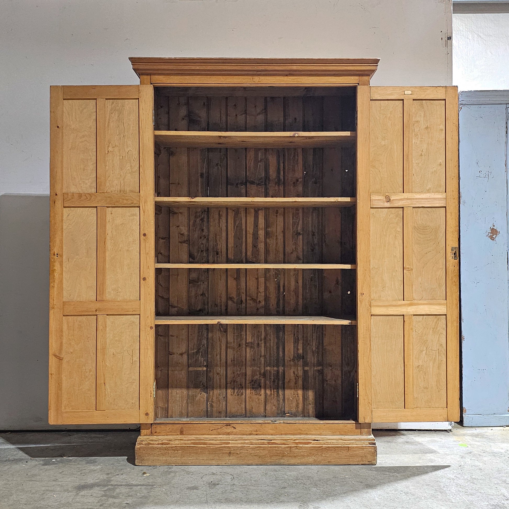 Finished with a classic molded cornice and a grounded plinth base, this cupboard has a substantial yet balanced presence—equally suited for a dining room, kitchen, bedroom, or as a statement storage piece in a living space. A timeless, hardworking antique with enduring appeal.