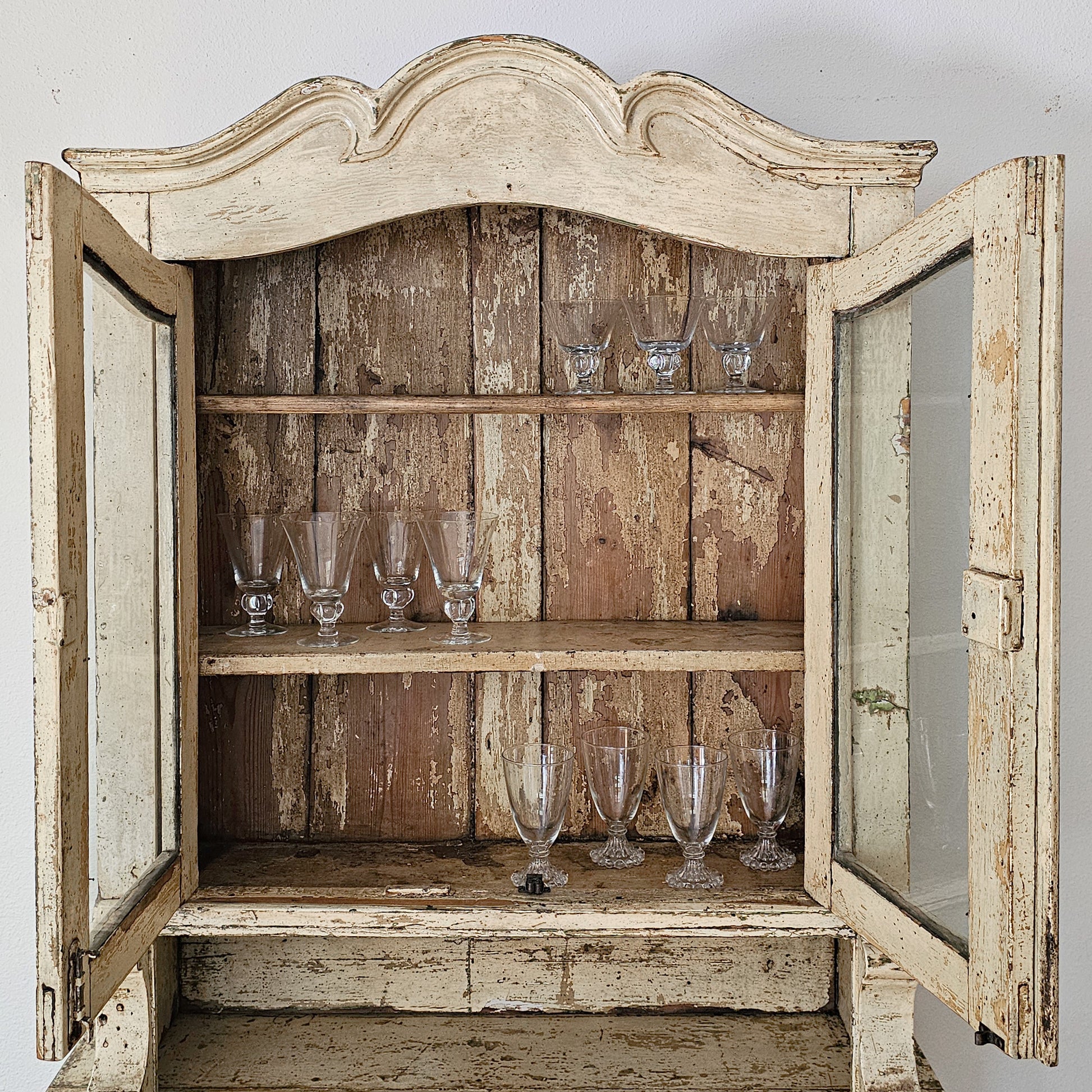 This hutch is perfect for adding vintage French flair to a kitchen, dining area, or display space. Its storied surface and classic silhouette make it both a functional storage solution and a statement piece.