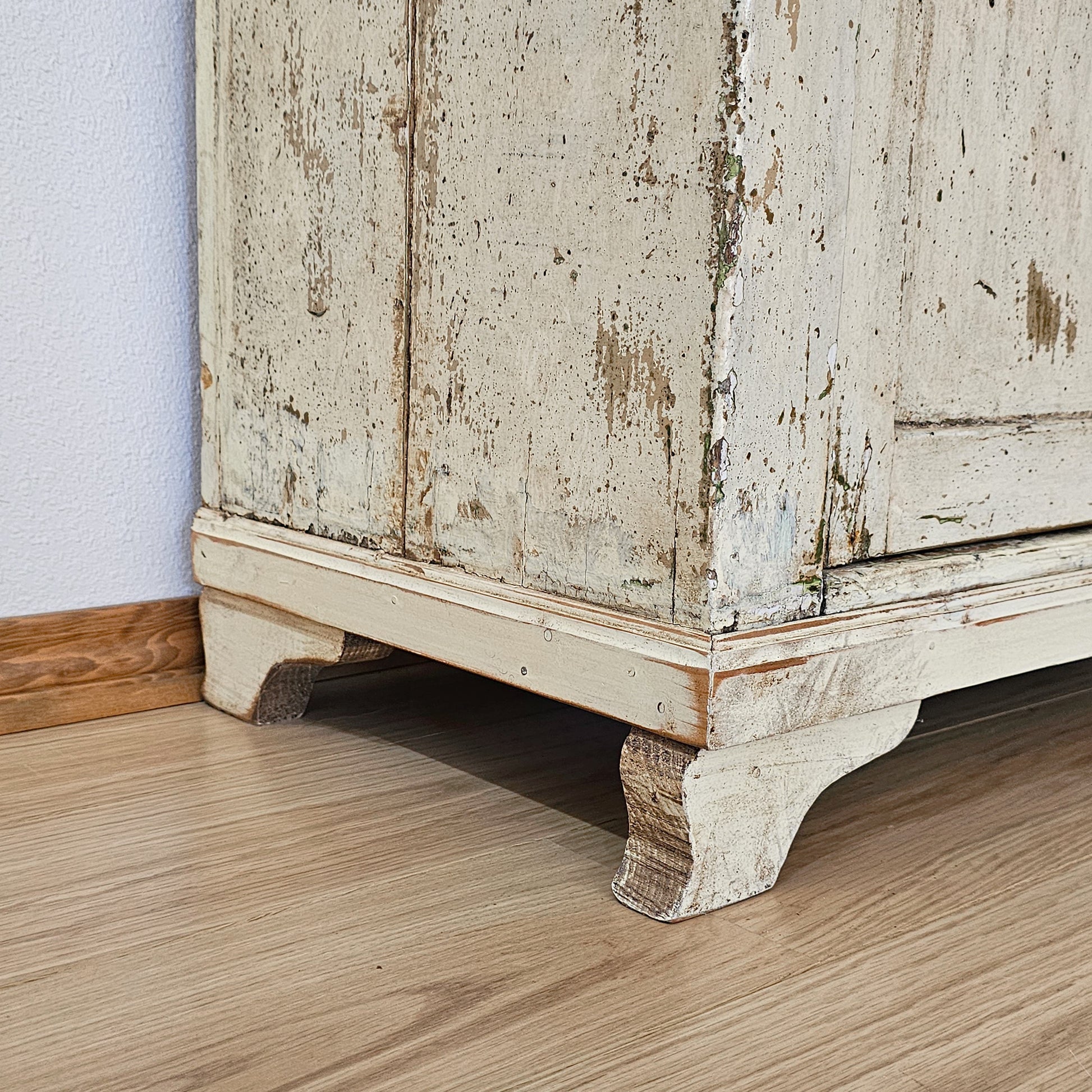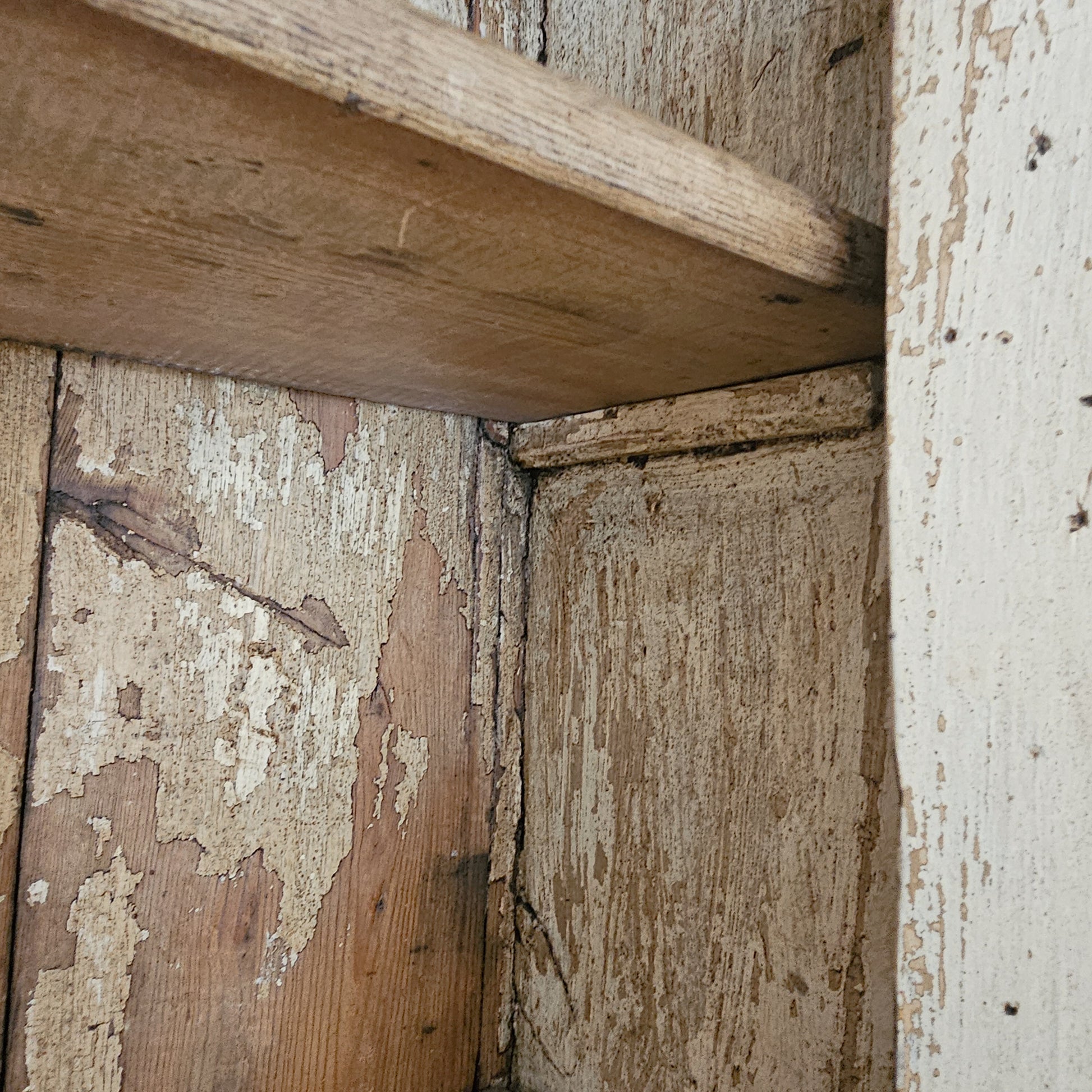 Add timeless charm to your space with this beautifully weathered antique French hutch. Finished in a cream white hue with soft yellow undertones, this piece exudes rustic elegance and old-world character.