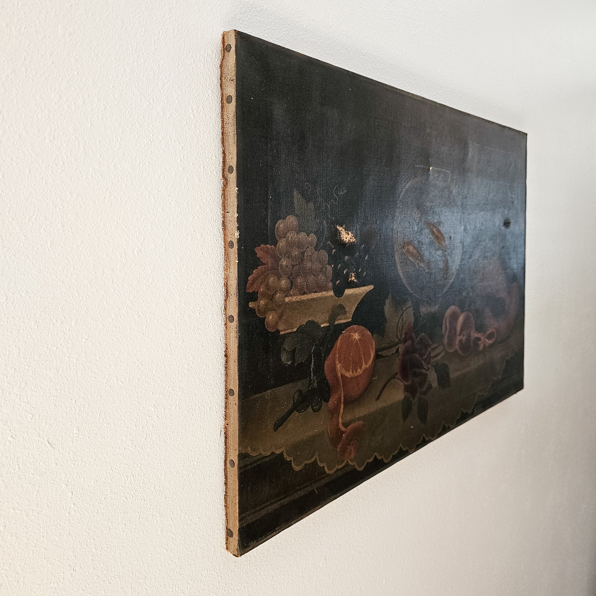 Antique Oil Painting – 19th-Century Still Life with Fish Bowl and Fruit