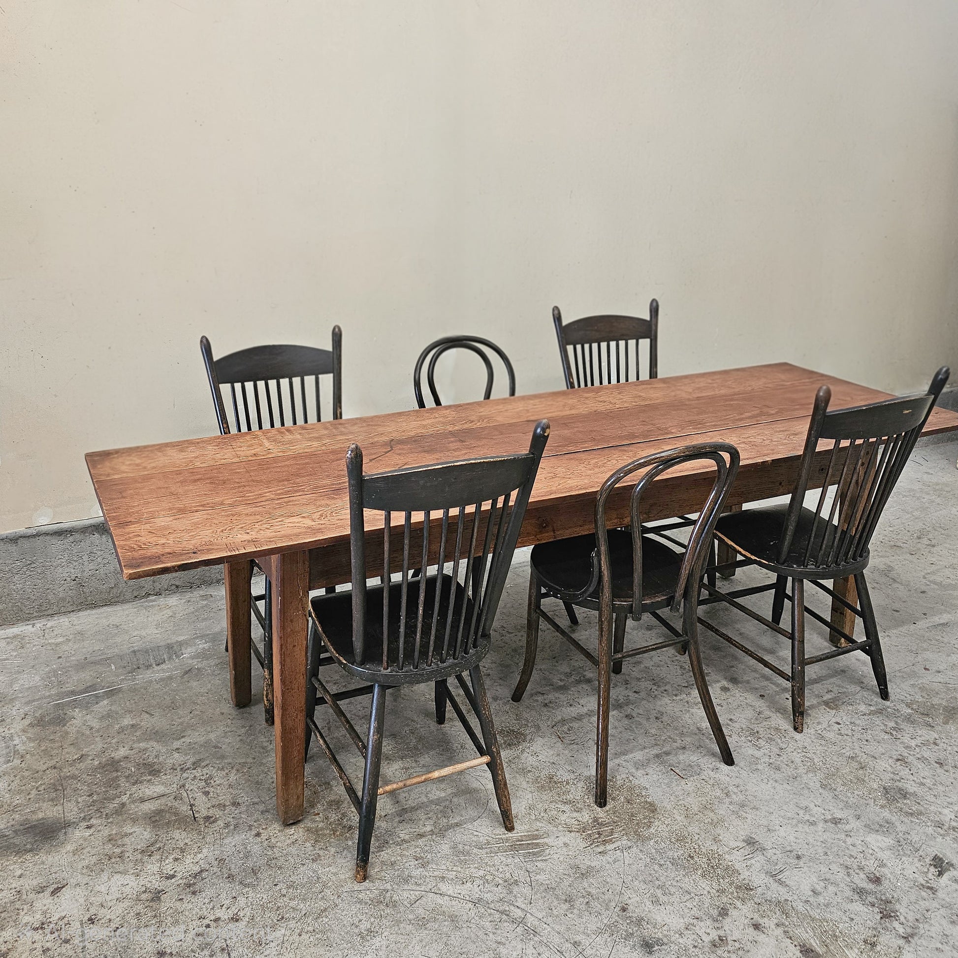 Antique three plank farmhouse dining table