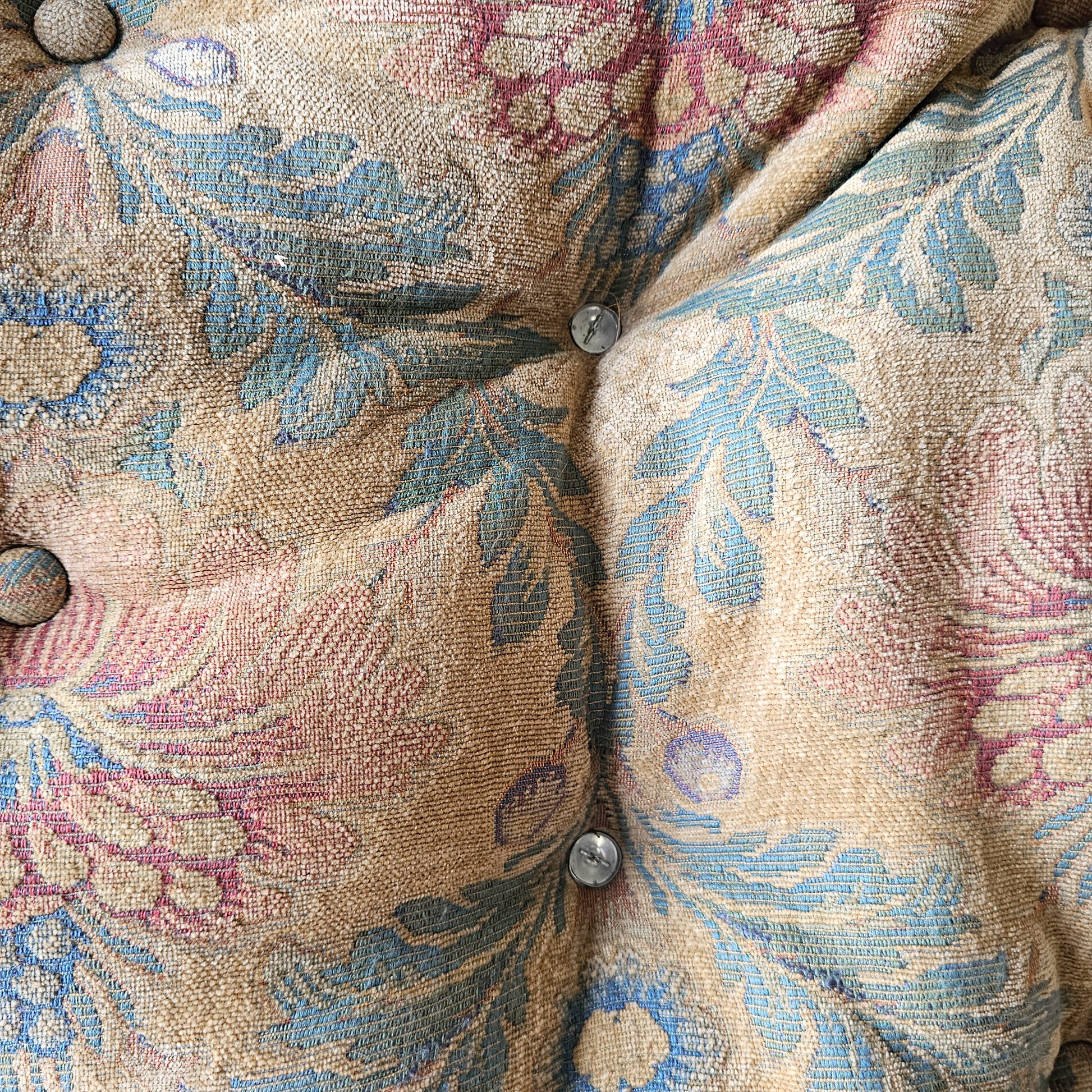 Comfortable, low-profile design ideal for a vintage-inspired or eclectic interior.