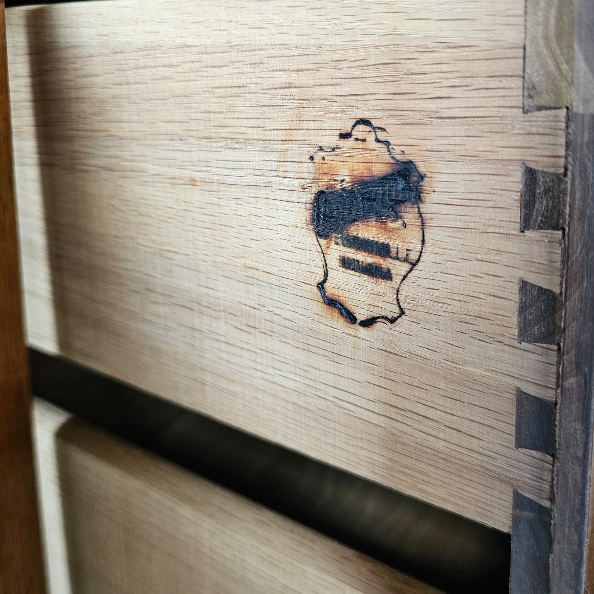 The lower portion offers four doors with striking walnut grain fronts, opening to generous storage space for linens, serveware, or everyday essentials.